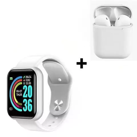 Kit Smartwatch D20 Pro + Fone Inpods I12 Bluetoorth - Branco